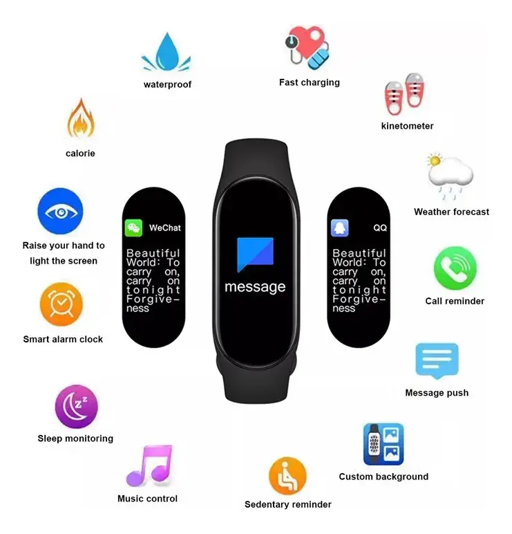La Smart Band M8 ofrece más funciones y mejor pantalla a un precio increíble. Su display AMOLED de 0.96" muestra notificaciones, hora, pasos, calorías y ritmo cardíaco. Incluye hasta 30 modos deportivos, monitoreo de oxígeno en sangre (SpO2)*, presión arterial, control de sueño, seguimiento de ciclo menstrual, control de estrés y respiración. Sumergible hasta 50 metros y con carga magnética, es ideal para quienes buscan un wearable completo y económico.